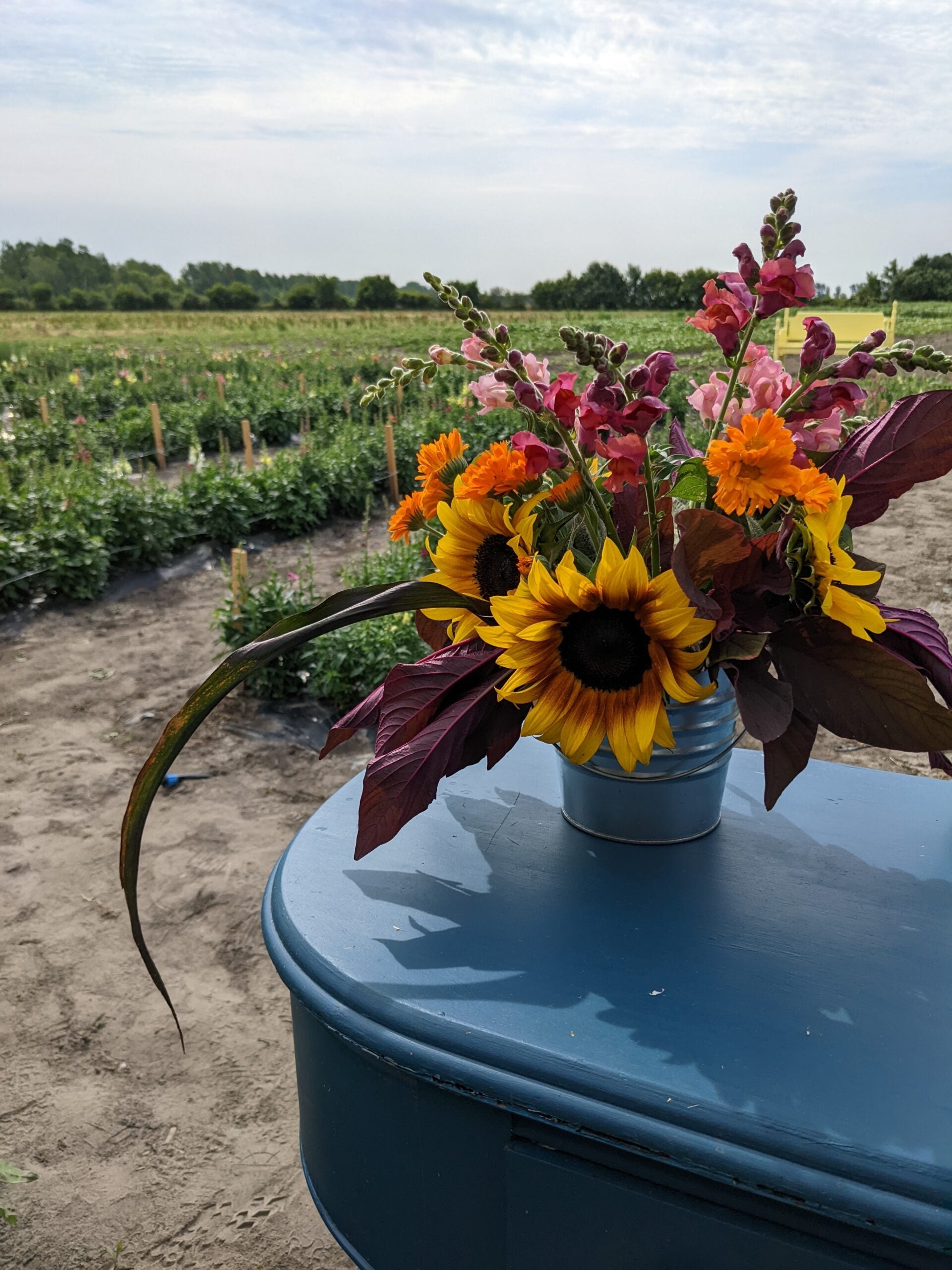 U-pick sunflowers, snapdragons, zinnias and more seasonal flowers are available from July until the first frost in September or October. We provide lots of tips on how to pick and design your own bouquet. Our Grab&Go Bouquet Stand is stocked with farm-grown bouquets throughout the growing season.